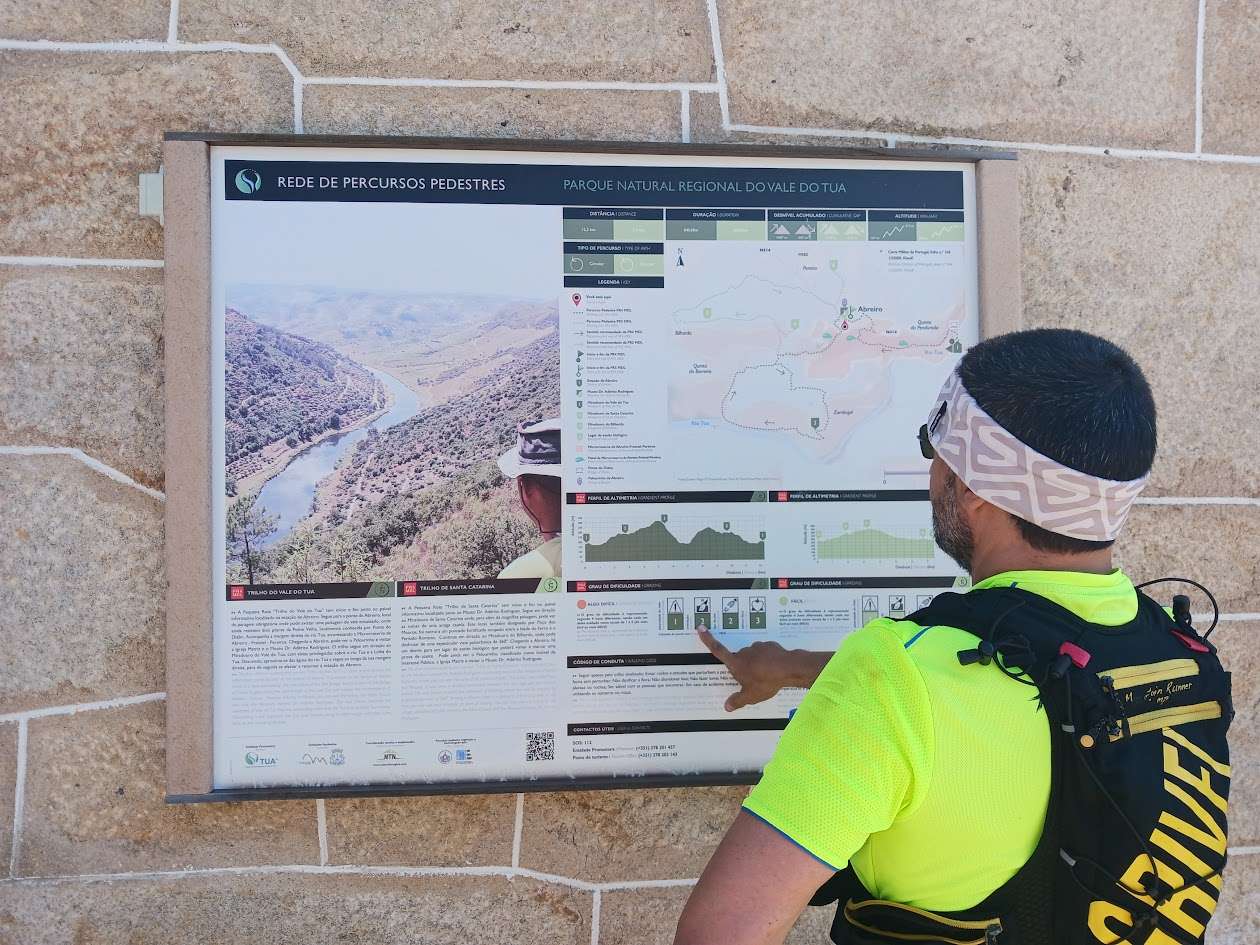 O trilho começa em frente ao Museu Dr. Adérito Rodrigues e sobe 2 Kms até ao Miradouro de Santa Catarina. A subida é árida, cravada em caminhos florestais esculpidos em bosques de sobreiro e carvalhos que deixam adivinhar as curvas do Rio Tua e vastas ondas de oliveiras.