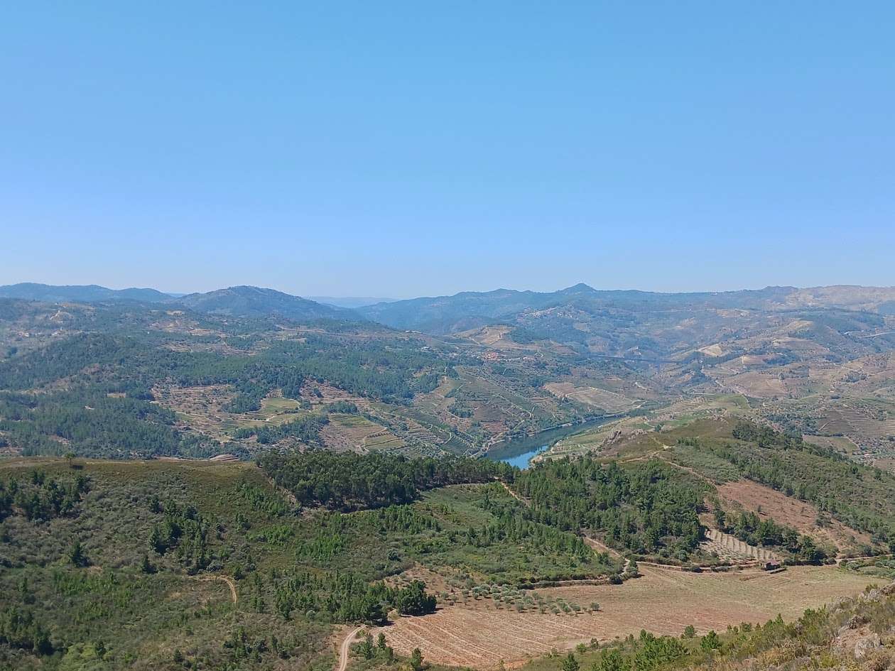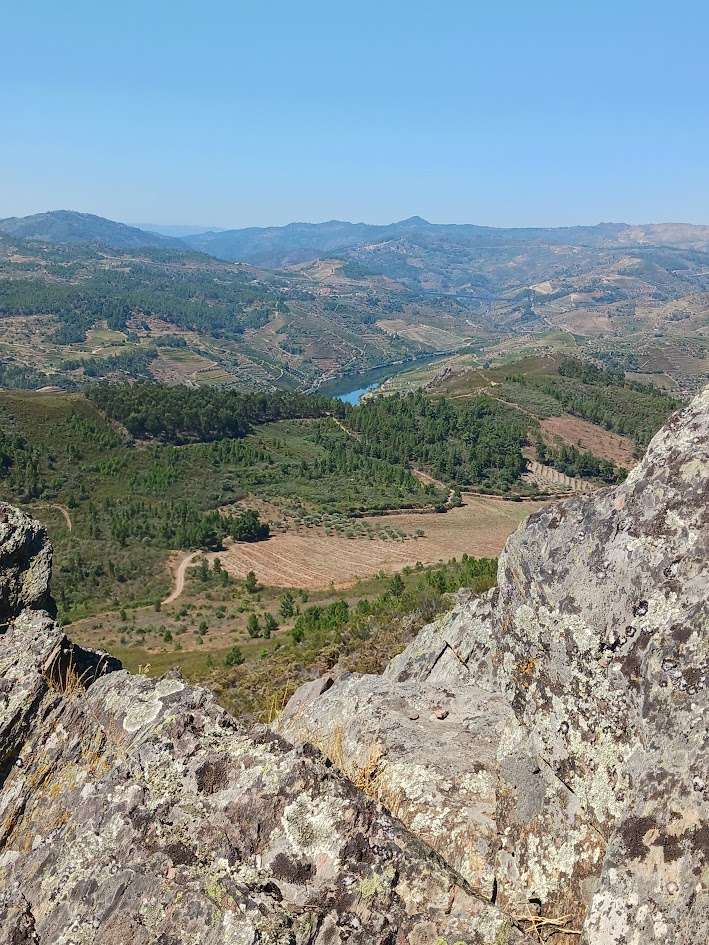 A vista do miradouro compensou o esforço: torrentes de carvalhos, azinhais e pinheiros, distribuídos em formas geométricas diversas, pelas bordas do rio tua, que brilha como prata acabada de enxaguar.  Sentamo-nos a observar a panorâmica que se estende desde o passado com que não conseguimos fazer as pazes, até às pontas de Vila Real.