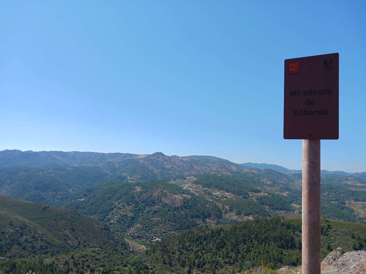 A vista do miradouro compensou o esforço: torrentes de carvalhos, azinhais e pinheiros, distribuídos em formas geométricas diversas, pelas bordas do rio tua, que brilha como prata acabada de enxaguar. Sentamo-nos a observar a panorâmica que se estende desde o passado com que não conseguimos fazer as pazes, até às pontas de Vila Real.