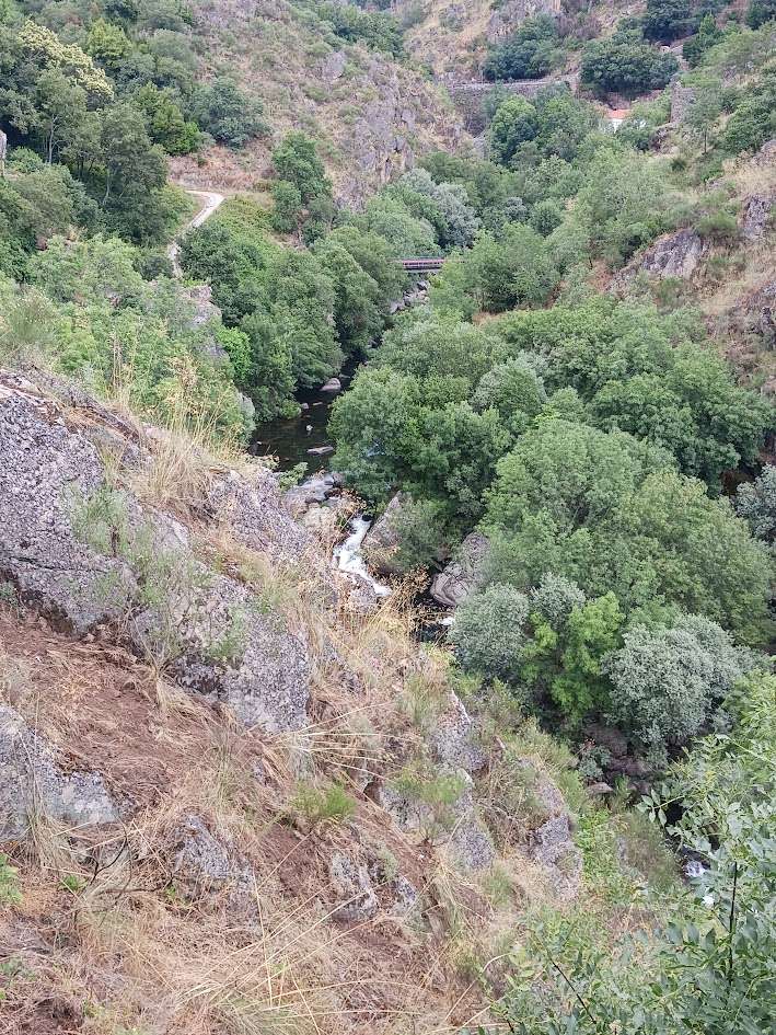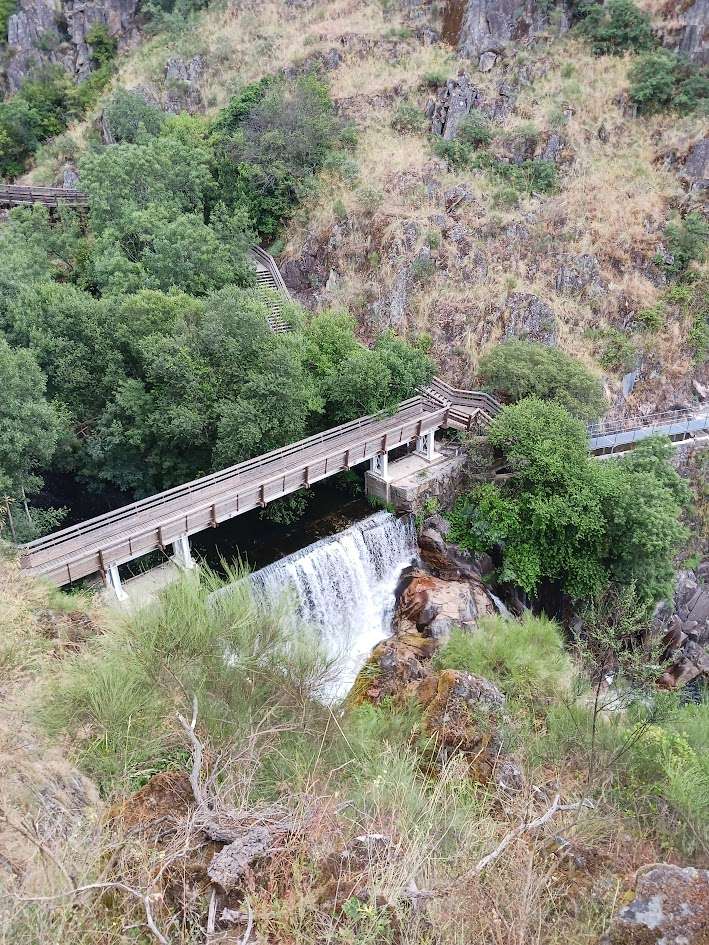 Todo o trilho é uma janela para muralhas rochosas de sugar o fôlego, embrulhadas em cachecóis de pinheiros e vidoeiros, giestas e urzes, lilases, brancas, amarelas. Finalmente os passadiços proporcionam uns escassos metros de terreno sem declive, e permitem a travessia do rio pelas bordas de um açude centenário que é a origem de uma cascata impressionante. Da ponte, é visível o lugar onde se situava a central hidroelétrica do Biel e a linha férrea vertical, que tinha início no miradouro da estação.